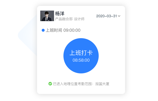 極速打卡極致體驗,打開手機就能自動打卡,徹底告別排隊,員工不再忘打卡;