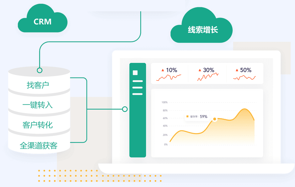 集成多方線索資源,海量數(shù)據(jù)平臺自動預(yù)測趨勢和行為客戶自動挖掘在庫中的線索數(shù)據(jù)信息,增加線索數(shù)量。